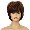 Perucă Scurtă Sintetică Amestec Brun Păr Ondulat cu Breton Perucă Tăiată Pixie pentru Femei Peruci Elegante de Mămică Naturală Zilnică Cosplay