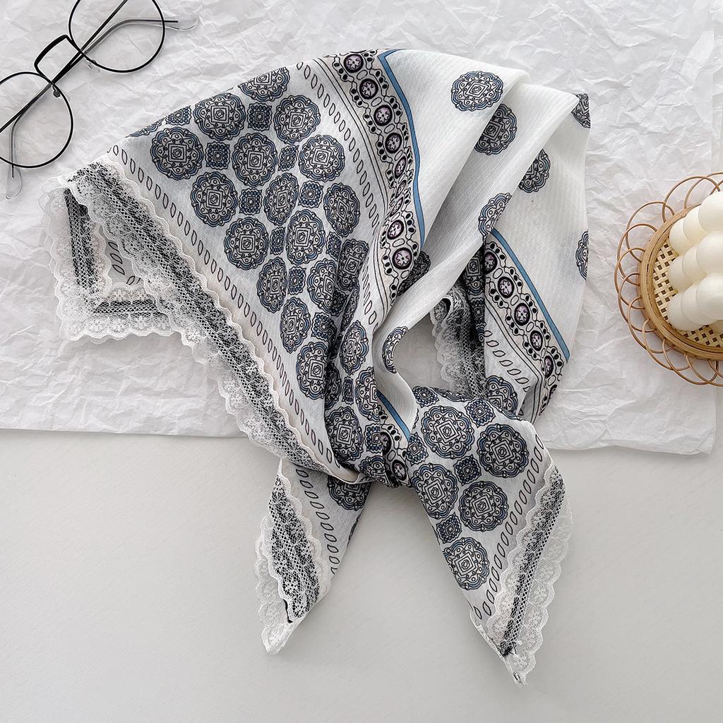 Spring And Summer Versatile Decorative Silk Scarf Polka Dot Pattern Lace Small Square Scarf Multi-Functional Headscarf Tied Hair Band
