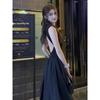 Rochie de vară neagră pentru femei 2024, fără spate, linie A, cu talie subțire