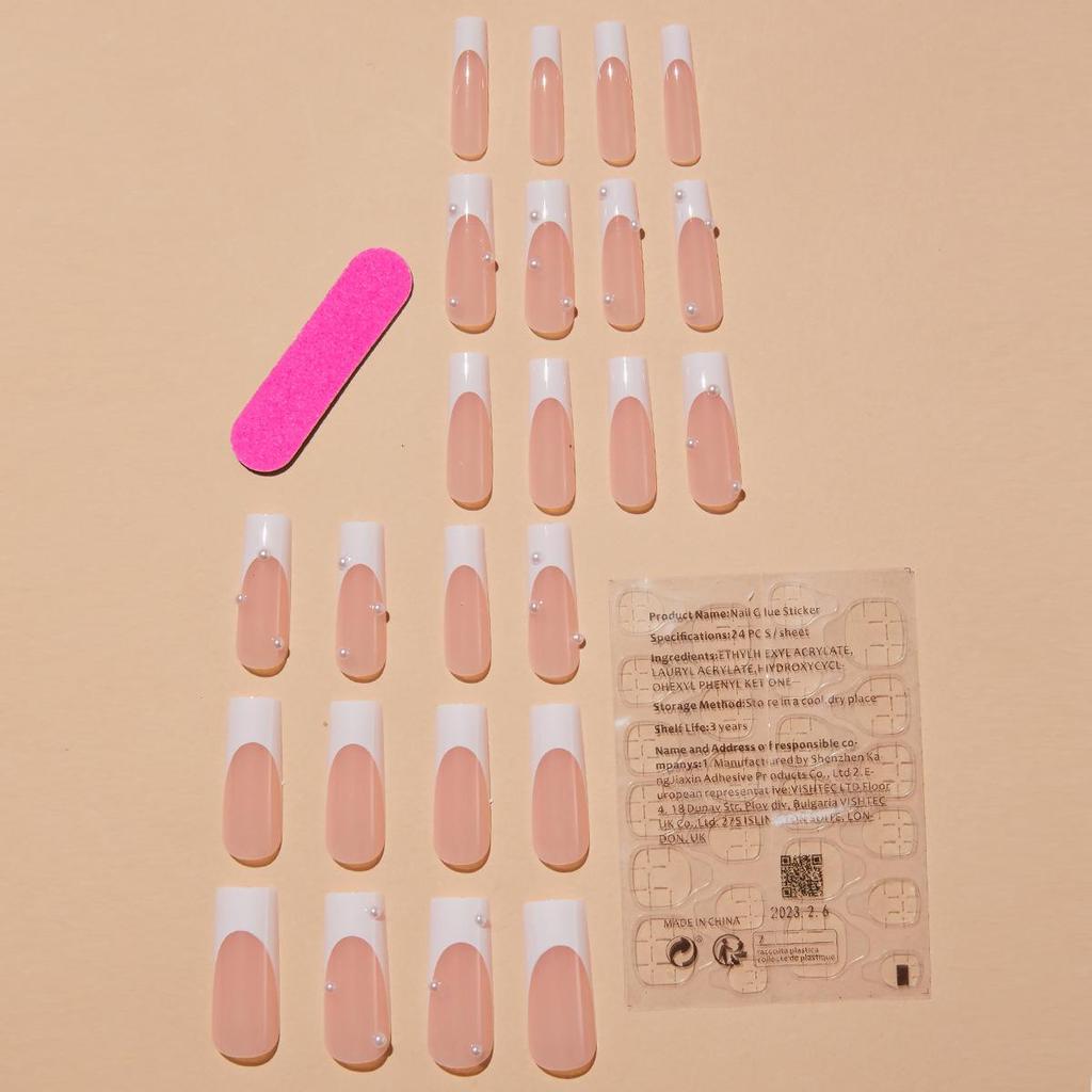 Trendy Long White French Pearl Rectangular Wearable False Nails