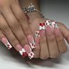 Long Red French Cartoon Bear Heart Nails with 3D Bow & Flower Design