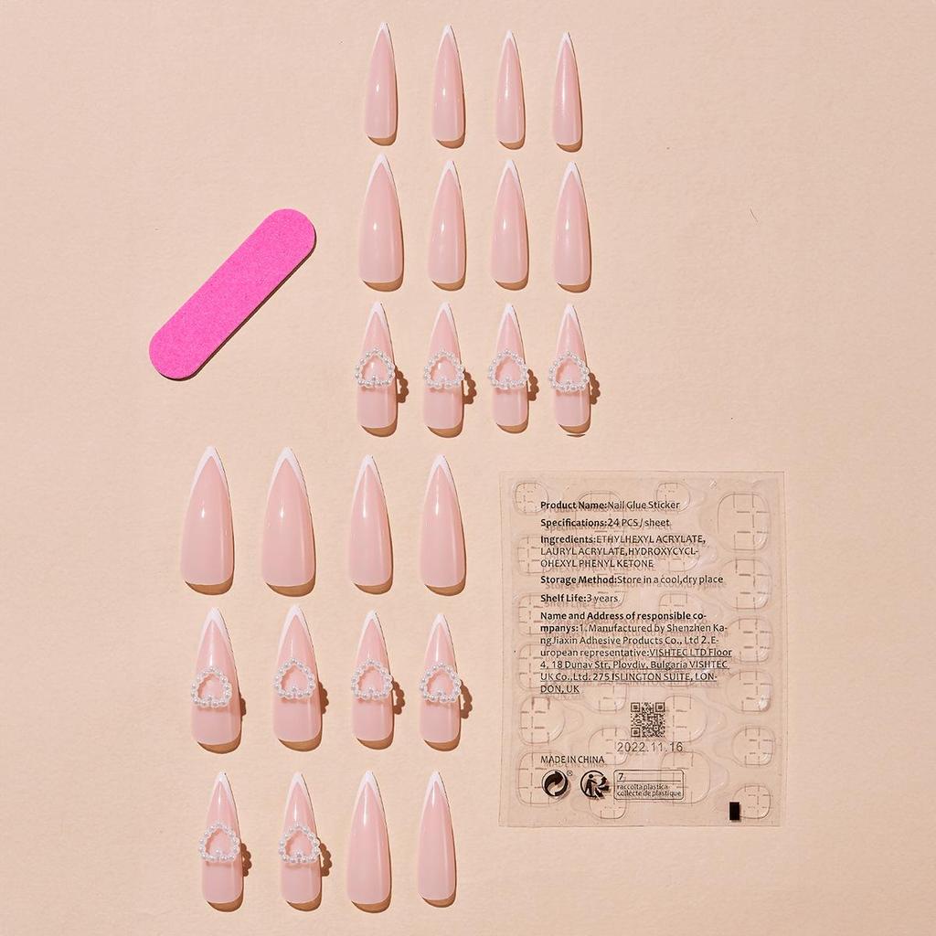 Pearl Heart Nude False Nails - Long Pointed Manicure Tips