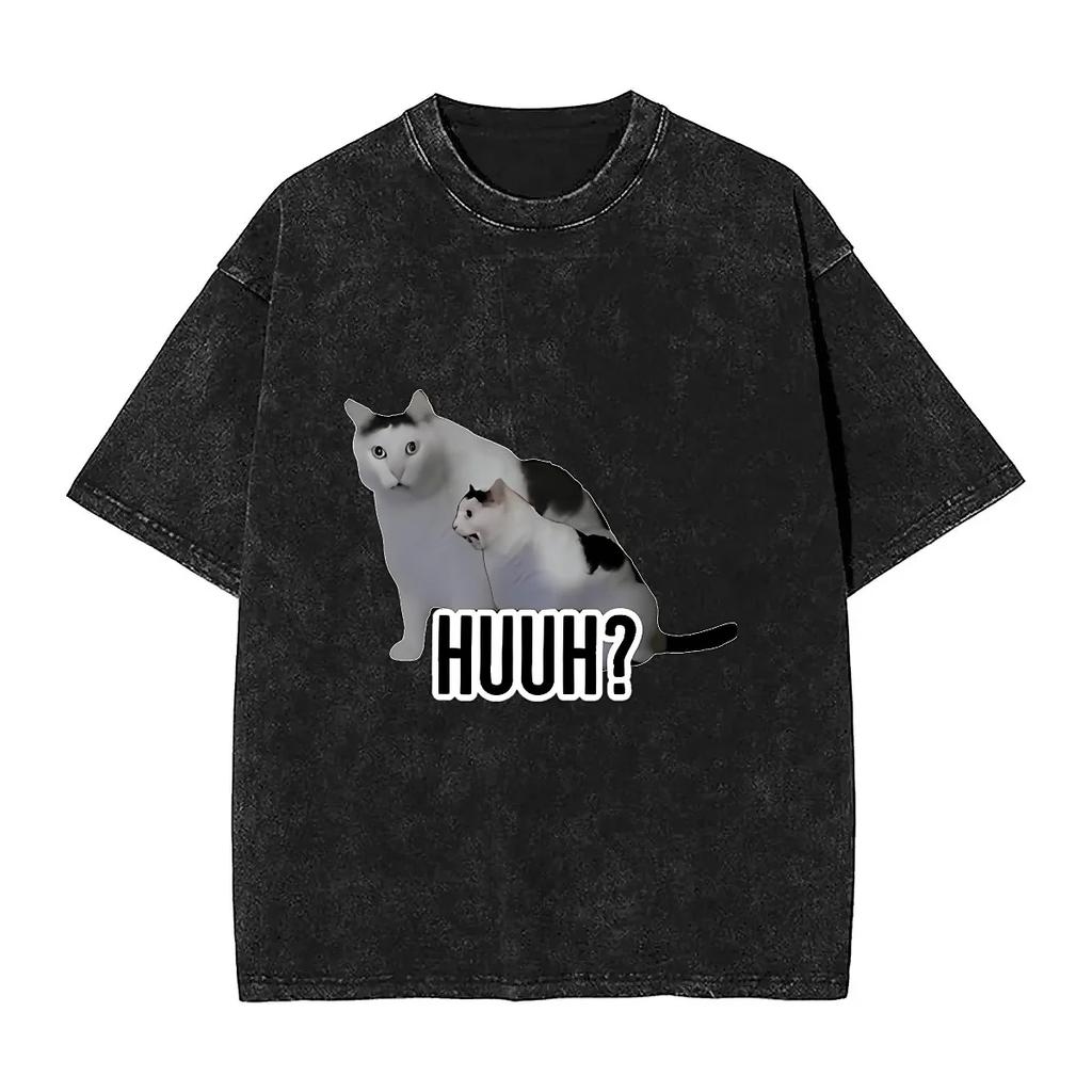 Huh Cat T-Shirt Meme Funny Novelty T Shirts Short-Sleeved Y2K Fun Tops Summer Simple O Neck Plus Size Top Tees