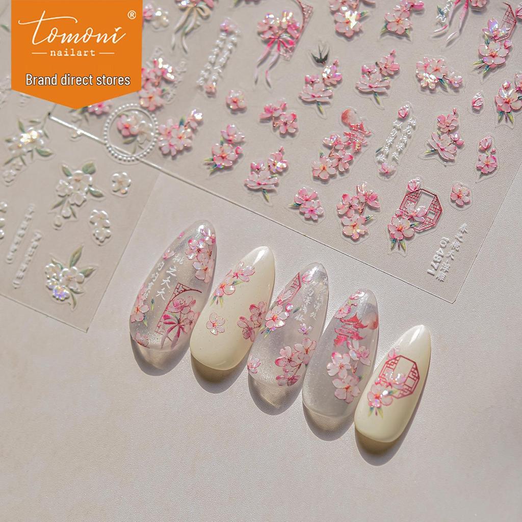 Tomoni Embossed Japanese Peach Blossom Nail Stickers - Spring Style Nail Art Decorations