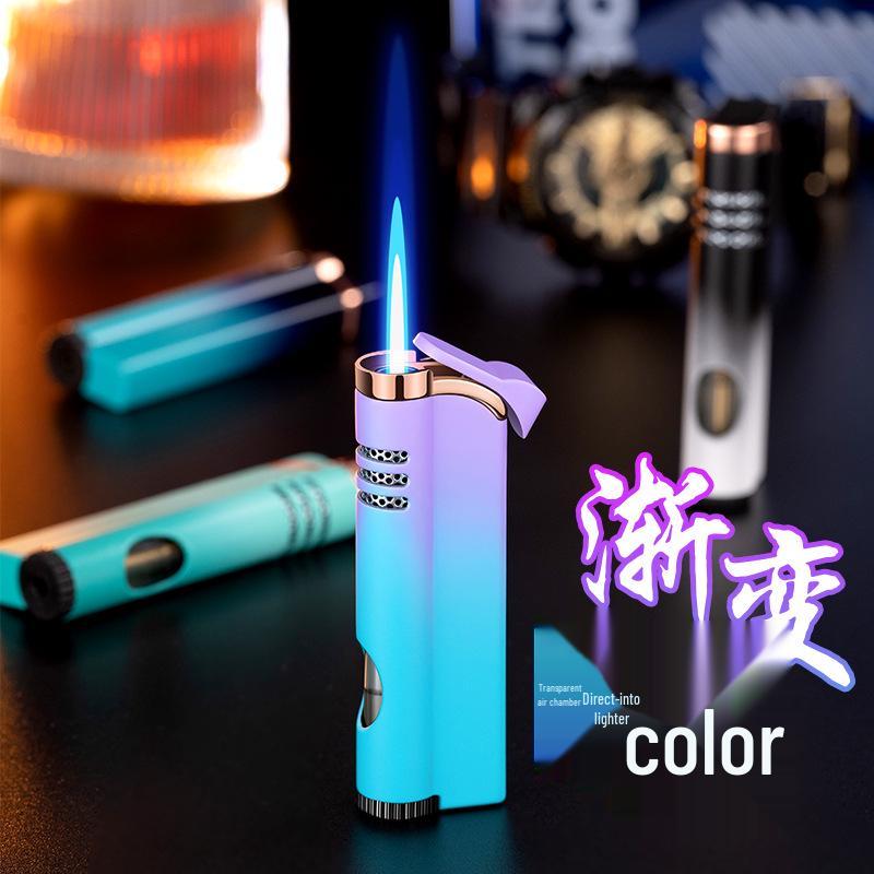 Stylish Windproof Direct Flame Gas Lighter with Visual Fuel Gauge and Gradient Design – Ideal Gift for Him