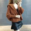 Palton scurt pentru femei noi, cu mâneci lungi, pulover cu glugă, la începutul toamnei și iarna Cardigan gros, solid, roz