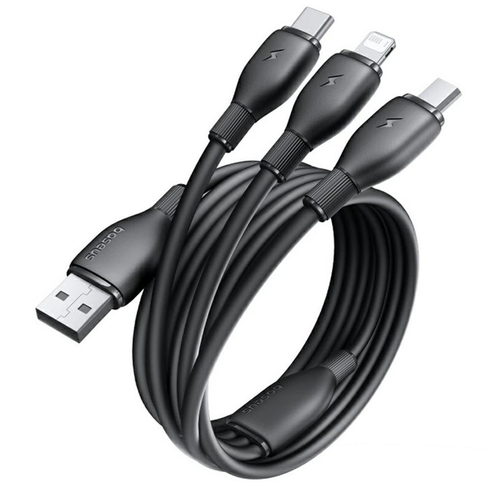 Cablu de Încărcare Rapidă BASEUS Ultra-Rapid Unul-Pentru-Trei USB la Micro USB+Lightning+USB-C 3.5A 0.8m