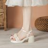Compilation of summer women's thick-heeled sandals, one-word buckle temperament shoes
