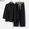 Costum Casual de Vară pentru Bărbați din Bumbac și In Două Piese Stil Chinezesc cu Șireturi Kimono Topuri+Pantaloni Costum Casual Bărbătesc Vintage Hanfu Costum Tang M-9XL