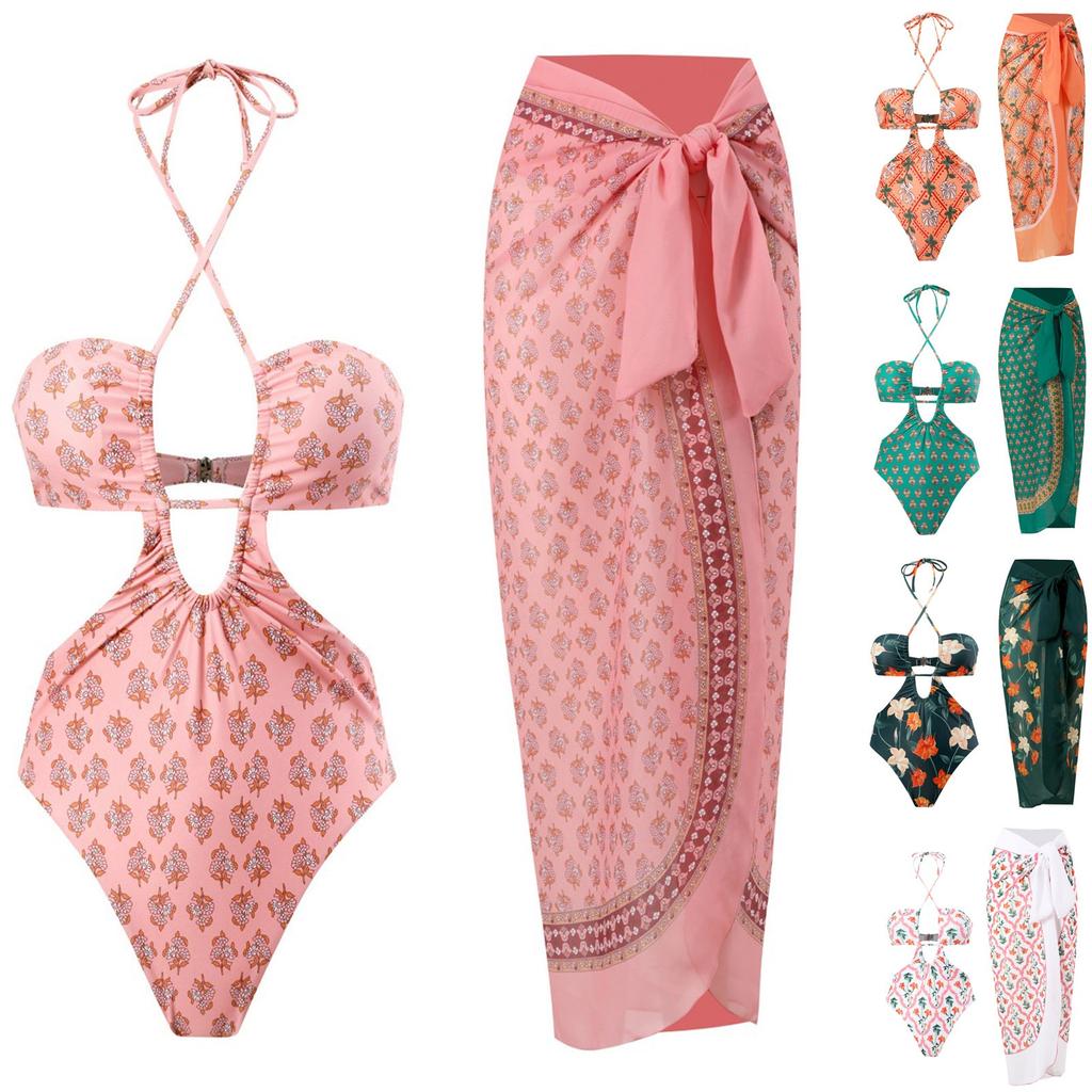 Women 1 Piece Swimwear1 Piece Cover UP Two Piece Vintage Print Swimsuit Monokini Bikini 2 Piece Swimsuits