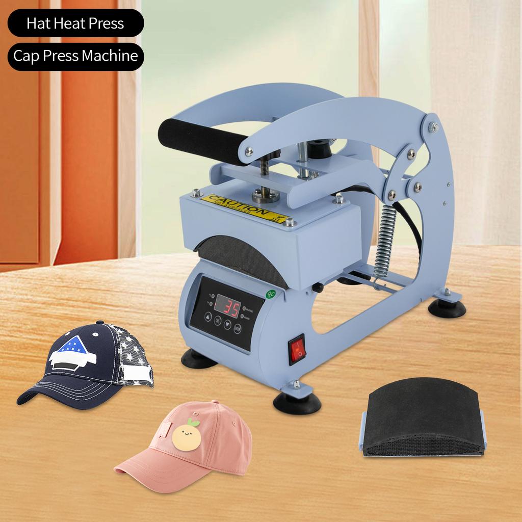 Fier Albastru, Aluminiu, Burete, Mașină de Presat, Presă Termică pentru Pălării cu Temporizator și Control al Temperaturii, Mașină de Presat Termic pentru Pălării 2-în-1
