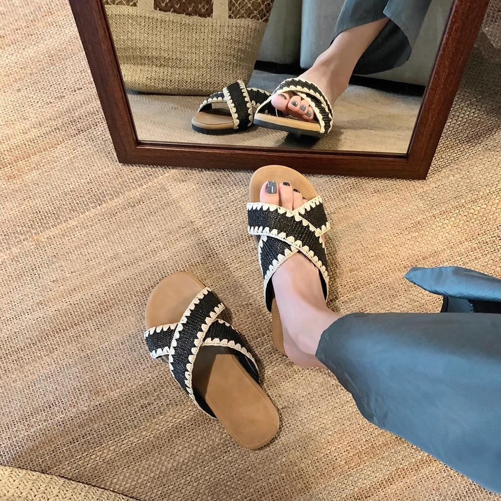 Sheepskin version lazy wind contrasting colors versatile woven cross word with versatile sandals women's summer wear