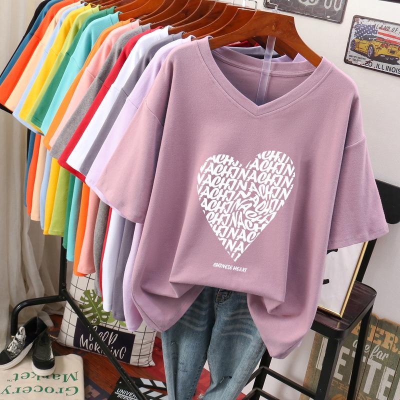 Tricou cu mânecă scurtă pentru femei, mărime mare, design larg și subțiere, nișă, bumbac pur, top cu gât în V care acoperă burta