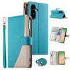 For Samsung Galaxy A56 5G Case Zipper Wallet Color Splicing Leather Flip Phone Cover with Straps