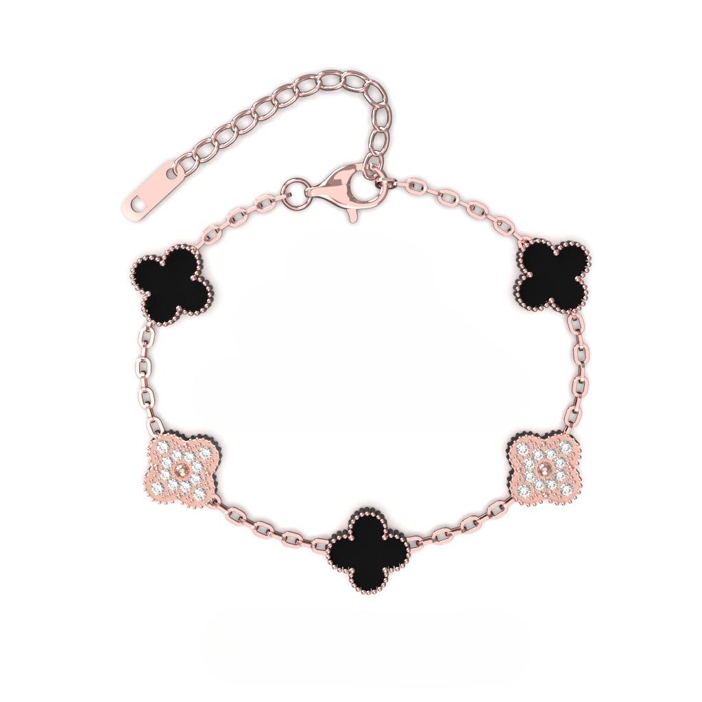 Brățară Trifoi cu Patru Foi de 13 mm Aur Roz Vid Cinci Flori Brățară Completă pentru Doamne