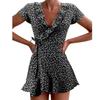 Rochie de damă cu bretele, dintr-o singură piesă, cu guler în V și volane, care subțiază