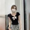 VAYLA Casual White Knitted Lace Patched Female T-shirts Y2K Korean Style Slim Tie Up Shirring Summer Top Tee Folds Outfits