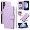 For Samsung Galaxy S24 FE Case Wallet Rhombus Leather Phone Cover with Shoulder Strap,Wrist Strap