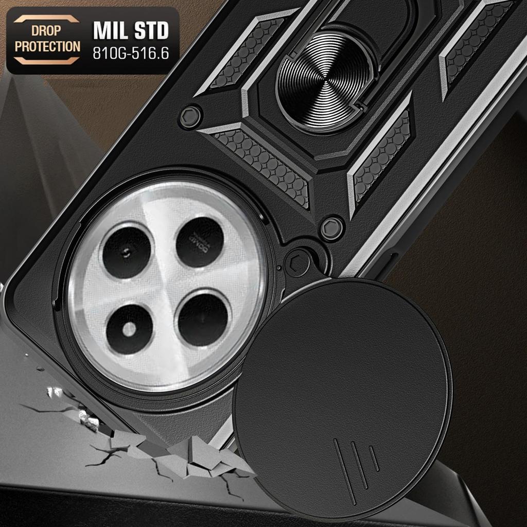 For Xiaomi Poco C75 4G/Redmi 14R 5G/14C 4G Case with Slide Camera Lid PC+TPU Kickstand Phone Cover