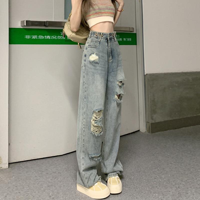 Women's Wide Leg Jeans High Waist Loose Pants Straight Leg Spring/summer Floor Pants