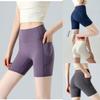 Pantaloni scurți de yoga nude, fără cusături, cu talie înaltă