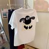 White lamb short-sleeved t-shirt women's summer foreign style loose and versatile design sense niche Hong Kong style chc top