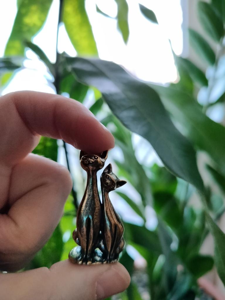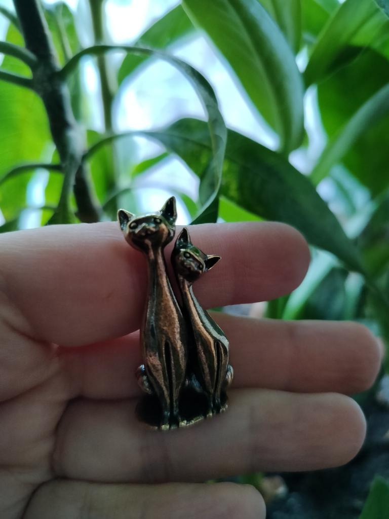 Ornament Sculptură Pisică Dublă din Alamă Artizanat Ornament Pisică Anime Acasă Desktop Living Room Birou Ornament Mic Artizanat