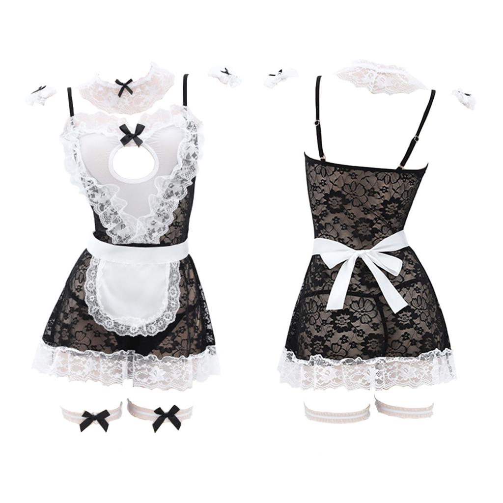 Maid Maid Uniform Set Cosplay Costume Erotic Temptation Extreme Underwear Moe Frill Sexy Costume Apron Cute Moe Babydoll Lingerie Black One Size