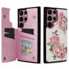 For Samsung Galaxy S22 Ultra 5G Phone Case Kickstand Flower Leather Coated TPU Cover