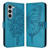 For Samsung Galaxy Z Fold6 5G Wallet Case with Wrist Strap Butterfly Imprint Leather Phone Cover