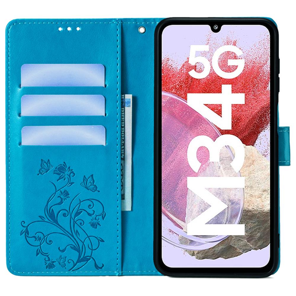For Samsung Galaxy M34 5G/F34 5G Case PU Leather Card Slots Holder Pocket Butterfly Flower Phone Cover
