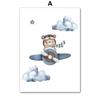 Boho Bear Aircraft Hot Air Balloon Cloud Nursery Posters Wall Art Print Canvas Painting Baby Kids Room Home Decoration Picture