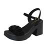 Sandals women's popular summer fairy style high heels thick-soled square-toe block-heeled sandals women's straight strap fairy shoes