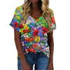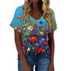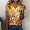 New Summer Floral Oil Painting 3D Print Women V-Neck T-shirts Harajuku Streetwear Oversized Tee Tops Female Clothing