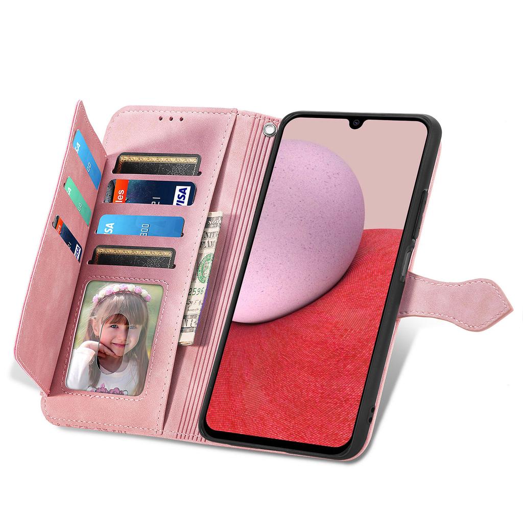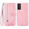 For Samsung Galaxy A14 5G/A14 4G Zipper Wallet Case with Strap Flower Imprint PU Leather Phone Cover