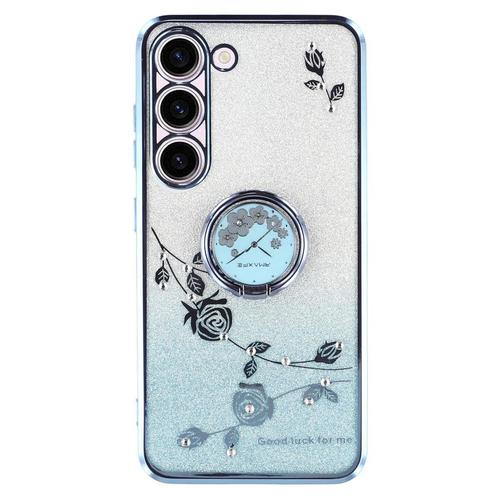 KADEM For Samsung Galaxy S23 TPU Case with Kickstand Flower Pattern Rhinestone Decor