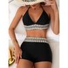Costum de baie bikini cu bretele spaghete, culoare uni, pentru femei