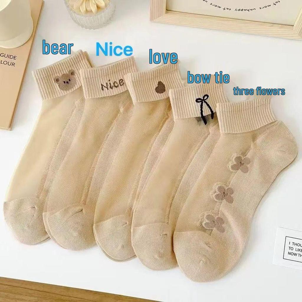 Women's Summer Ultrathin Solid Color Cotton Ankle Socks - Trendy, Versatile, Skin Tone, Cute Transparent Japanese Khaki Design