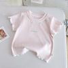 Tricou cu mânecă scurtă brodat cu fundă pentru fete Nou de vară pentru copii Gât rotund Elastic Slimming Top Bebeluș Bumbac pur Tricou de bază