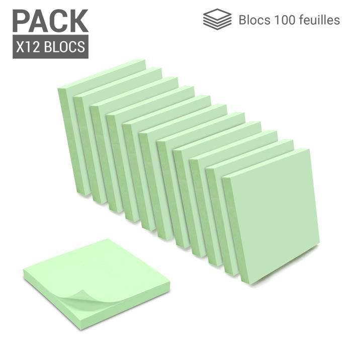 Notes autocollantes repositionnables - 1200 feuilles - vert pastel - 7,5 x 7,5 cm - 12 blocs