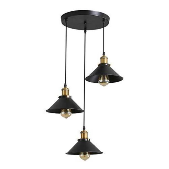 Candelabru Suspendat Industrial Retro - Goeco - 3 Lămpi - Soclu E27 - Metal Negru