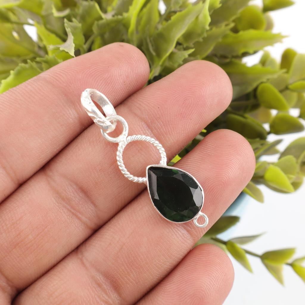Pandantiv Handmade cu Piatră Prețioasă Turmalină Verde, Pandantiv din Argint Sterling 925 Masiv Bijuterii Antice, Pandantiv Pentru Cadou de Logodnă