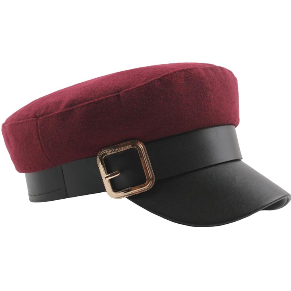 Marine Cap Wool Newsboy Cap Buckle Stylish Hat for Going Out Women Men CZ206 [White Fang] (Red)