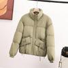 Petite Women's Korean Style Down Cotton Coat, Solid Color, Stand-up Collar, Cold-Proof, Short Bread Jacket for New Year.