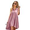 Rochie de damă de vară, cu decolteu în V, talie înaltă, fără mâneci, în față, scurtă, în spate, rochie lungă în linie A