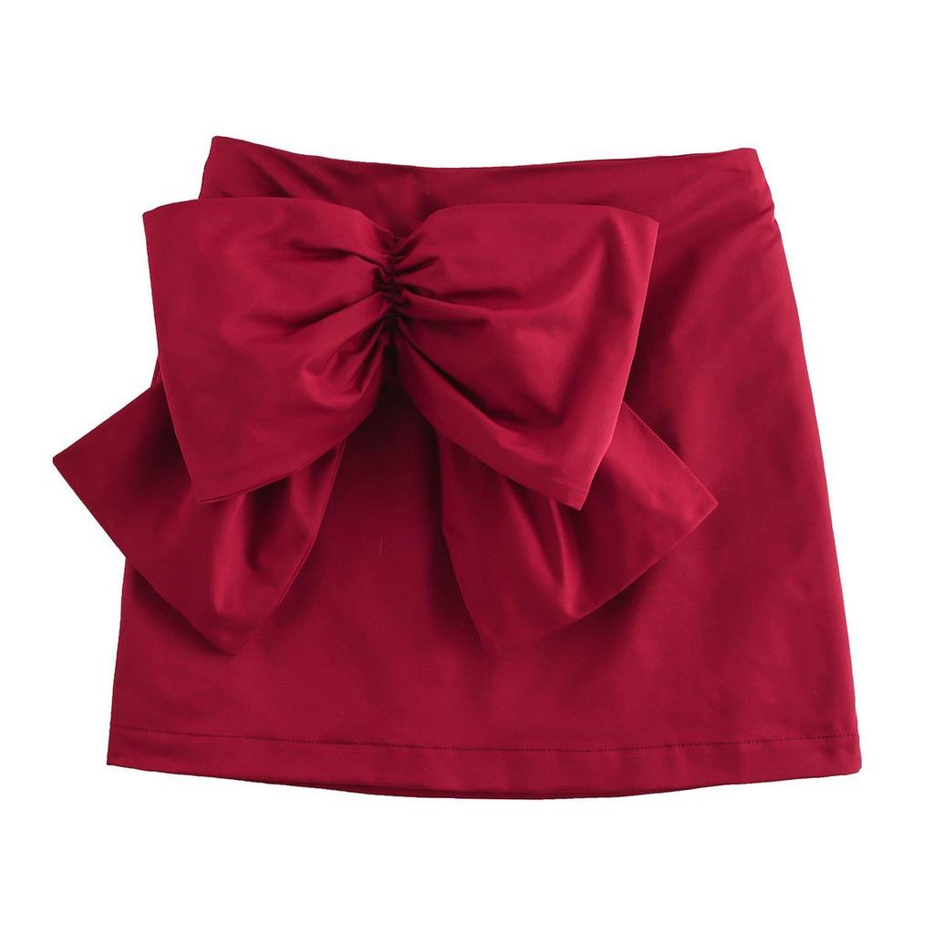 2024 Winter High-Waisted A-Line Skirt with Bow Decoration - European & American Fashion, Age-Reducing Style