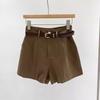 Pantaloni scurți casual de damă 2025 Primăvară Stil coreean Retro Negru cu talie înaltă și picior larg