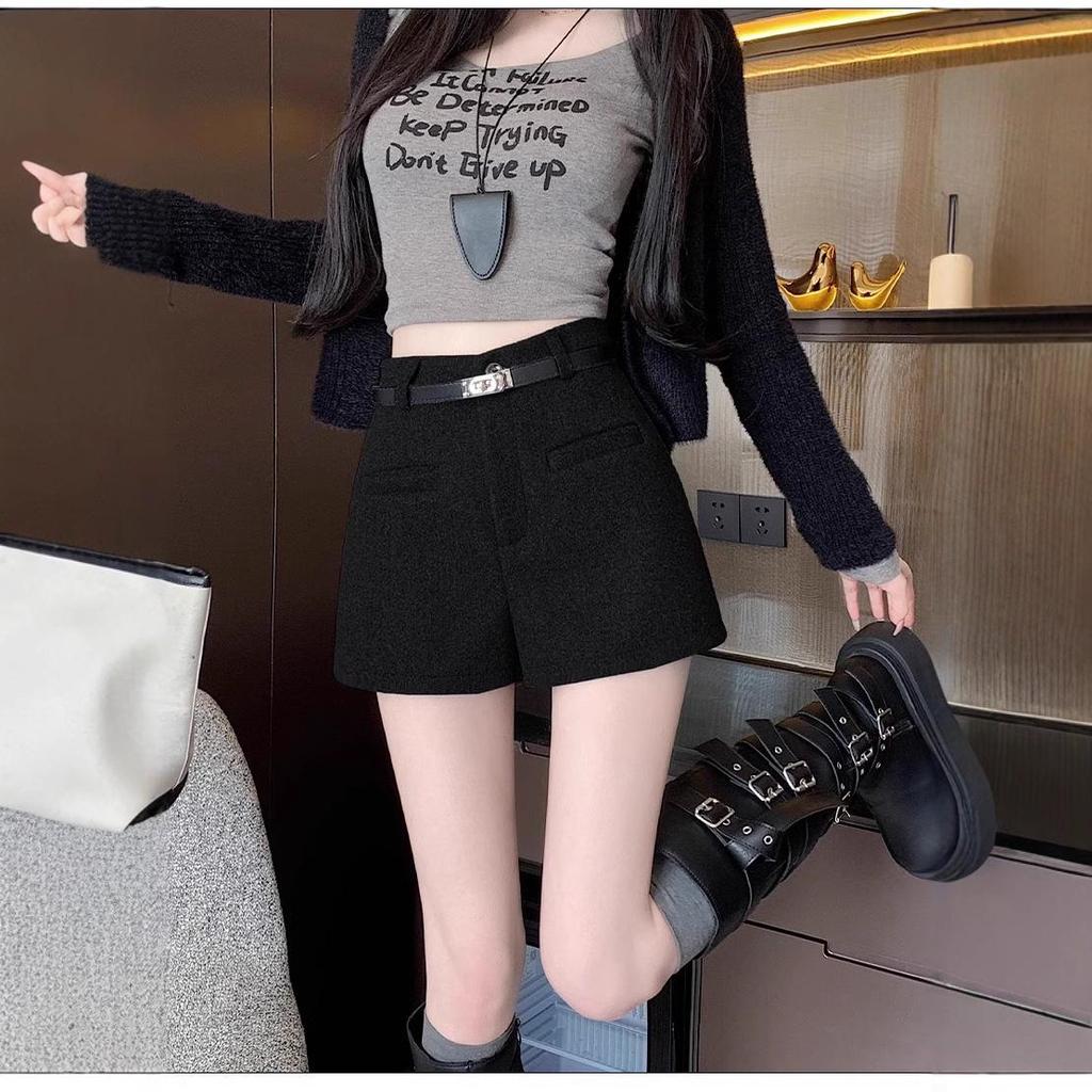 Pantaloni scurți din lână cu talie înaltă și croială bootcut - Pantaloni casual versatili de toamnă/iarnă pentru femei, cu efect de slăbire