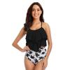 Acest costum de baie elegant din două piese este conceput pentru femeile care iubesc un look de plajă șic și confortabil. Având o croială cu talie înaltă, oferă o potrivire măgulitoare și acoperire suplimentară.. Costumul de baie prezintă un model trendy cu dungi care adaugă o notă de eleganță garderobei tale de vară.. Confecționat din poliester de înaltă calitate, oferă durabilitate și o potrivire mulată pentru confort pe tot parcursul zilei.. Detaliile unice cu margine în formă de frunză de lotus adaugă o notă jucăușă și feminină, făcându-l o alegere perfectă pentru a face plajă la piscină sau pentru a te bucura de o zi la plajă.