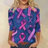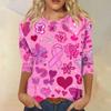 Women's Fashion Casual Seven Split Sleeve Printed Loose Round Neck Top